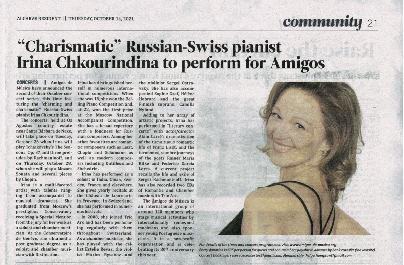 Au programme du récital, des œuvres de virtuoses tels que Mozart, Chopin, Rachmaninov, Tchaïkovski ou Liszt. Mais lrina n'en est pas à sa première prestation. A 6 ans, elle interprète en public une chanson française à Moscou. Cinq années plus tard, elle obtient le diplôme rouge, correspondant à une médaille d'or, et dés l'âge de 13 ans, participe à différents grands concours et fait partie de plusieurs ensembles musicaux, ce qui lui a permis d'obtenir un 1er prix d'accompagnatrice à Moscou.